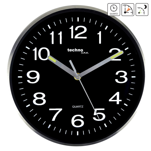 Бесшумный механизм с плавным ходом секундной стрелки делает эти часы подходящим выбором для спальни. Несмотря на то, что циферблат часов черного цвета, время будет легко узнать даже в темное время суток благодаря светонакопителю на стрелках, цифрах и индексах. Оправа корпуса изготовлена из шлифованной стали, а циферблат накрыт минеральным стеклом, что не подвержено царапинам в отличие от пластика.