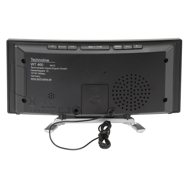 Technoline WT460 - это часы объединенные с цифровым FM-радиоприемником в одном портативном корпусе. Особенностью данной модели является возможность установить любую радиоволну в качестве будильника. При прослушивании радиоприемника можно записать в память устройства до 10-ти любимых радиостанций, а также установить таймер отключения звучания радиоприемника, что очень удобно вечером перед сном. Интересным решением стало использование вогнутого дисплея, на котором ярко отображаются крупные цифры. Часы с радиоприемником работают от блока питания, поставляемого в комплекте.