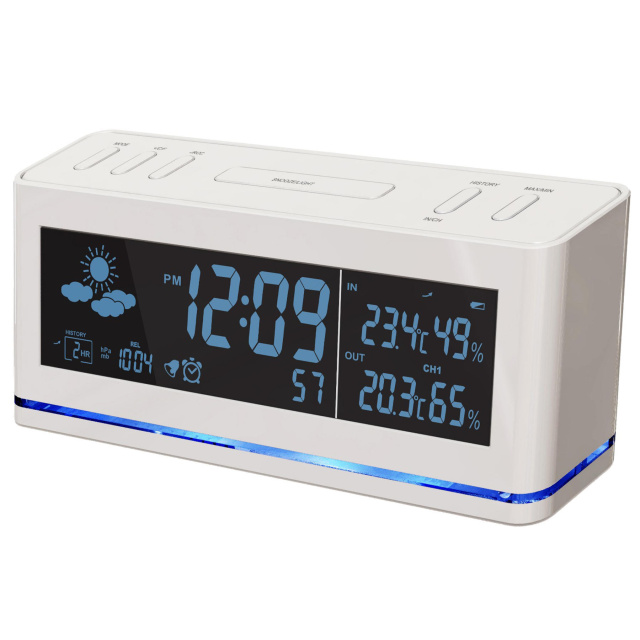 Яркость подсветки корпуса и экрана регулируется в трех вариантах: OFF, LOW, HIGH, что позволяет настроить метеостанцию с учетом личных требований. Кроме того, метеостанция имеет будильник с функцией отложенного сигнала (snooze), что поможет всегда быть вовремя на встрече или не проспать на работу утром. Все эти функции делают метеостанцию Technoline WS6850 White незаменимым помощником в быту.