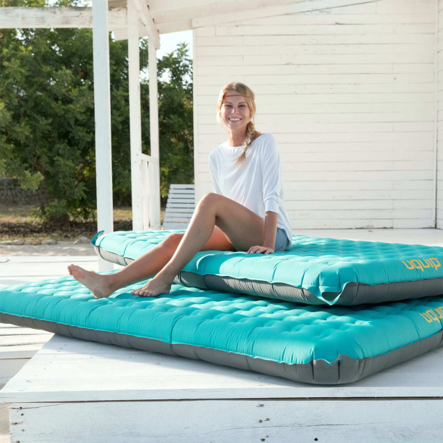 Верхняя оболочка Uquip Betty Double имеет мягкую на ощупь поверхность, нижняя сторона минимизирует скольжение на гладком полу палатки. Надежный двухсторонний клапан типа "Boston" подходит к стандартным насосам для матрасов и обеспечивает быстрый спуск воздуха после использования. Высота изделия 15 см сделает отдых комфортным даже на неровной поверхности.