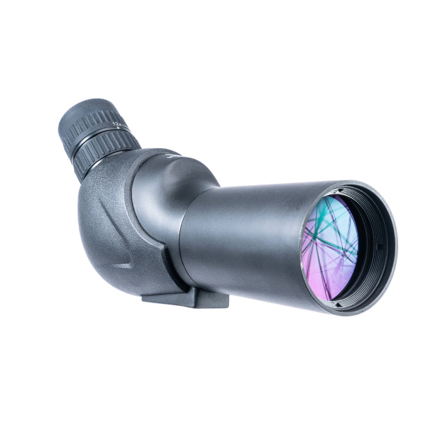 Tripod mountable. В редких случаях подзорные трубы используются для наблюдения без штатива. Как правило это трубы с прямым окулярным узлом. Большие увеличения, длительные наблюдения, съемка на камеру или смартфон с помощью трубы, а в особенности окулярный узел под углом 45º, требуют стабильного положения трубы. Данная модель имеет хомут с креплением на штатив со стандартной резьбой 1/4 - 20 UNC. Возможно использование штативов без быстросъемной планки.