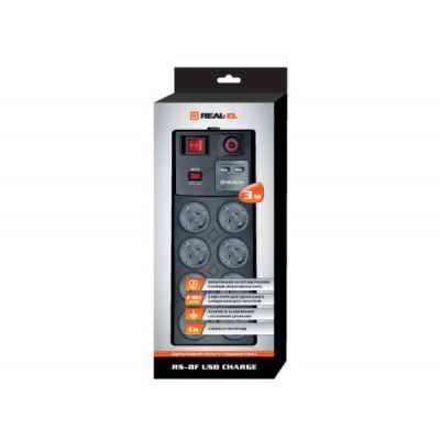 Сетевой фильтр питания REAL-EL RS-8F USB CHARGE 3m, black (EL122300004), Одеса