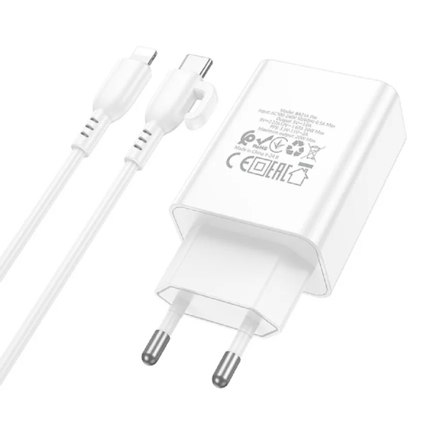 Набор BOROFONE BA21A Pro СЗУ 1xType-C+ кабель Type-C/Lighting, 20W, 1м, White, Blister, Одеса