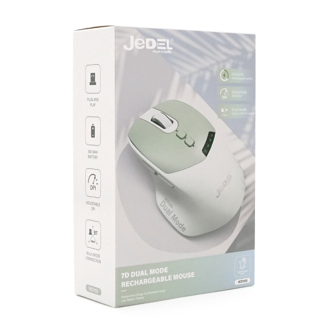Мышь беспроводная JEDEL WD155, 1000/1600/2000DPI, 2.4 GHz+Bluetooth 5.0, 3.7V 500mAh, Type-C зарядка. 109x71x42 мм. 80 г. Green, Box, Одеса