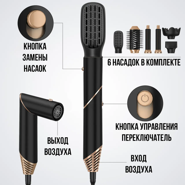 Складаний фен-стайлер для укладання волосся з 6 різними насадками Hot Air Styler 1000W, Одеса