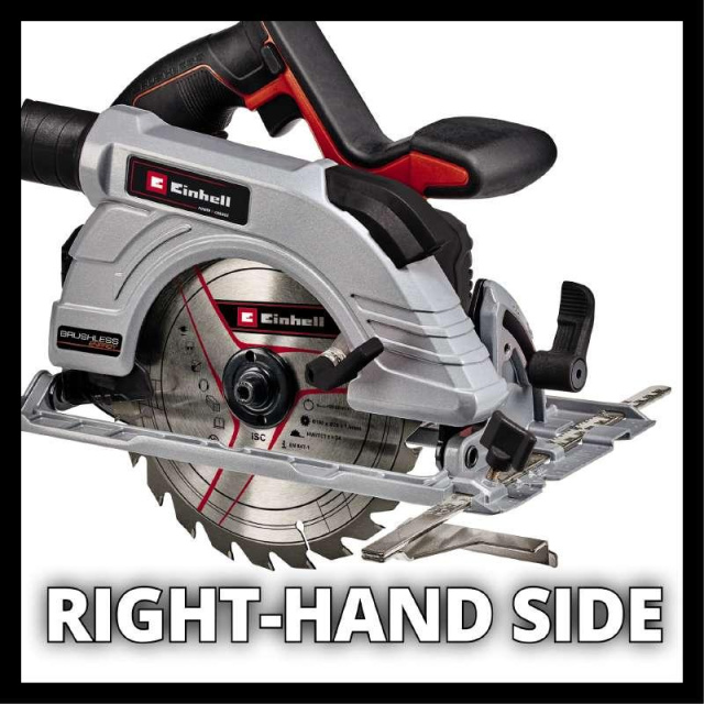 Нова акумуляторна циркулярна пила лінійки Power X-Change system Einhell TE-CS 18/190 Li-Solo серії Expert plus являє собою високоякісний, зручний універсальний інструмент і призначена для багатоцільового використання як аматорами, так і професіоналами для здійснення поздовжніх, поперечних і похилих пропилів в масивній деревині, твердих деревоволокнистих, деревостружкових, столярних плитах і пластмасі. Макс. глибина різання складає 65 мм завдяки пильному диску O190 мм (при 90 ° або 45 мм при 45 °). Безщітковий двигун забезпечує велику потужність і тривалий час роботи. Велика зручна ергономічна рукоятка з м'якою накладкою забезпечує хорошу фіксацію інструменту в руках, створюючи додатковий комфорт, і разом з відкидним захисним кожухом роблять тривалу роботу з ручною циркулярною пилкою Einhell TE-CS 18/190 Li-Solo зручною і безпечною. Міцна алюмінієва підошва з чудовими ковзаючими властивостями забезпечує чисту, точну і безперервну розпилювання. Для оптимального освітлення зони різання є яскрава Led підсвічування. Точні розрізи забезпечуються за рахунок вказівних маркерів точно вказують на лінії розрізу до 0° і 45° і ширину пропилу, а також наявність паралельного упору дозволяють зробити точну розпилювання вздовж лінії розмітки. Адаптер пиловидалення може бути використаний для підключення пилососа для очищення робочого місця під час роботи. Підошва ручної акумуляторної циркулярної пилки Einhell TE-CS 18/190 Li-Solo також підходить для використання з направляючої Einhell L700 позволяюшей легко зробити точний розпил. Інструмент поставляється з Power X-Change акумулятором 18V 4,0 Ah та зарядним пристроєм.