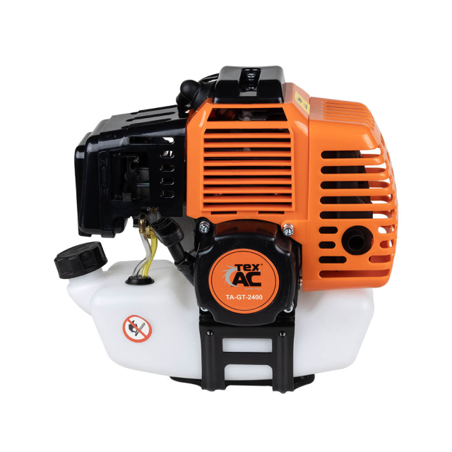 Мотокоса ТехАС TA-GT-2400 призначена для скошування трави, бур'яну за допомогою волосіні або ножа. У мотокоси встановлений двотактний бензиновий мотор об'ємом 43см³, який розвиває швидкість обертання валу на холостих обертах 3000-6000об/хв. Залежно від встановленого оснащення змінюється ширина покосу, при використанні котушки ширина скосу трави становить 420мм, а ножа 250мм.