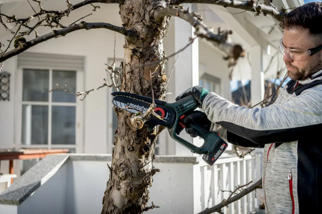 - Як аксесуар, доступна телескопічна штанга MS, яка перетворює ланцюгову пилку Metabo MS 18 LTX 15 у висоторіз.