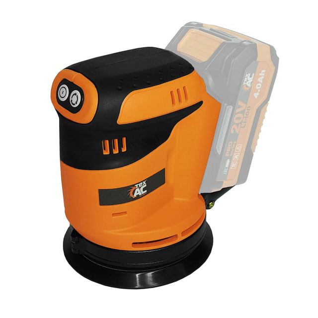 Tex.AC TAOE ES125 — зручна й продуктивна автономна ексцентрикова шліфмашина на базі акумулятора 20 В, призначена для шліфування деревини, лакового покриття, фарб, а також підготовки поверхонь до фінішного оздоблення.Оснащена регулятором обертів та пилозбірником, є надійним і зручним інструментом для оздоблювальних робіт.