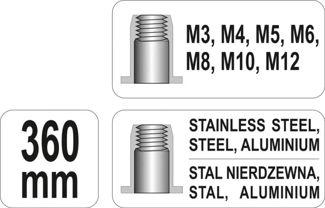 Заклепочник дворучний різьбовий YATO для нітогайок М3-12 мм 360 мм (YT-36127), Одеса
