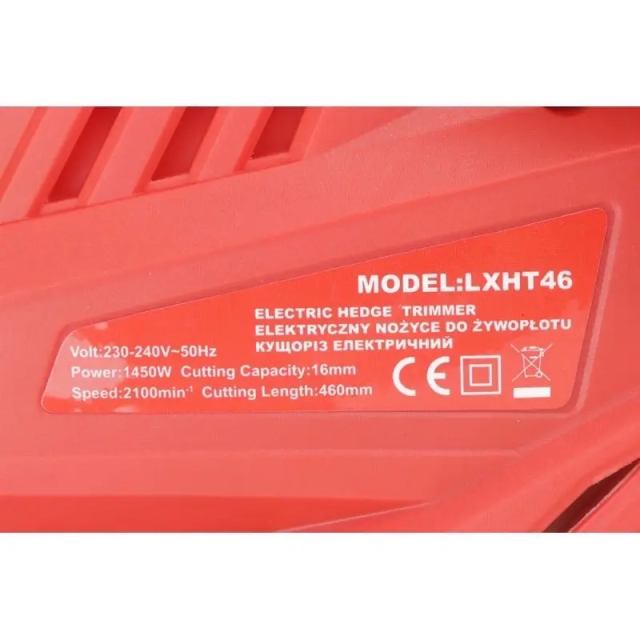 Електричний садовий кущоріз LEX 1450 W LXHT46 : 1450Вт, шина 460 мм, 2,8 кг, (LXHT46), Одеса