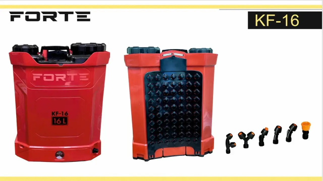 Обприскувач акумуляторний Forte KF-16 допоможе швидко обробити великі площі посівів від шкідників та захворювань. Підкачування рідини відбувається автоматично завдяки наявності акумулятора, заряду якого вистачає кілька годин безперебійної роботи. Обприскувач має гнучкий шланг та телескопічну трубку, що дає великий радіус розпилення. Тому обробка території чи саду не триватиме багато часу. Широка горловина бака є зручною для приготування розчину. Дана модель має ергономічний дизайн і оснащена широкими ременями на плечах, які сприяють рівномірному розподілу ваги.