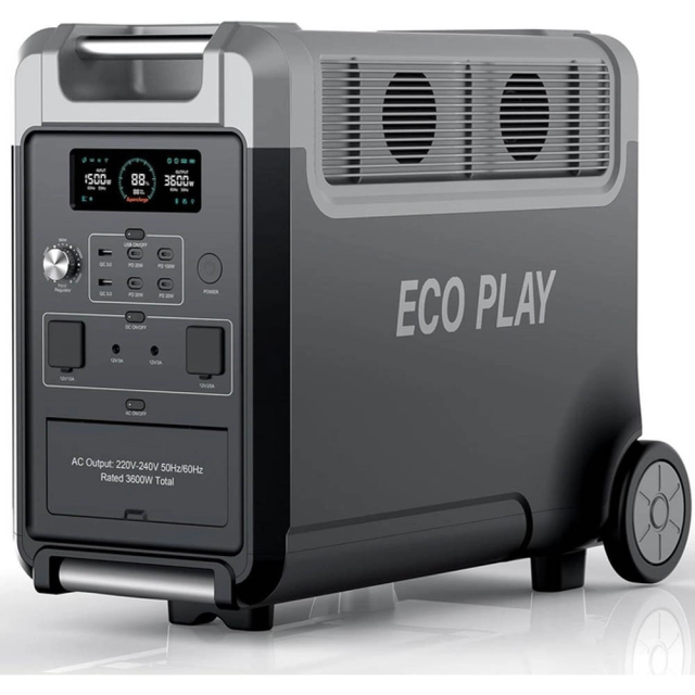 це двонаправлена зарядна станція Ecoplay з функцією ДБЖ 3600 Вт. Це високонадійна портативна електростанція з чистою синусоїдою, що безпечно живить електронні пристрої, забезпечуючи стабільну електроенергію.