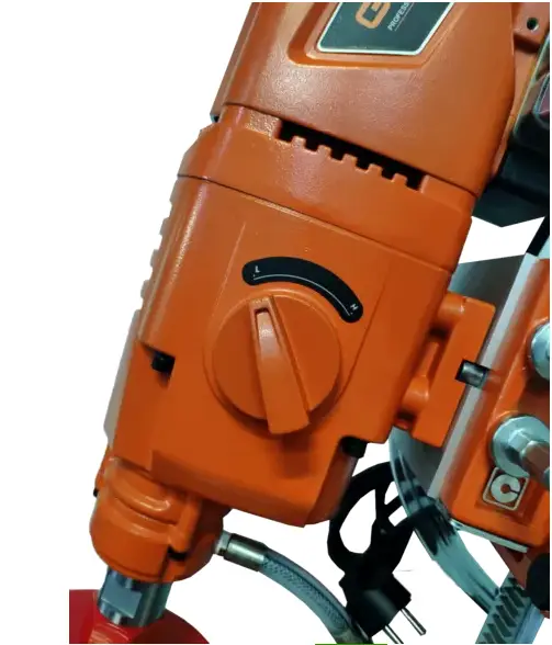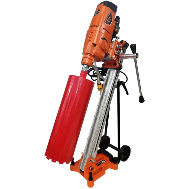 Бурильна установка GTM DK-250/2/45 - електрообладнання для мокрого буріння отворів в бетонних, кам'яних, цегляних і гранітних поверхнях за допомогою алмазних коронок. Представлена модель фіксується на спеціальній стійці (станині), яка входить в стандартну комплектацію. Підключається до системи водяного охолодження і дозволяє проробляти отвори діаметром до 250 мм. Алмазна коронка кріпиться безпосередньо до шпинделя без використання патрона.