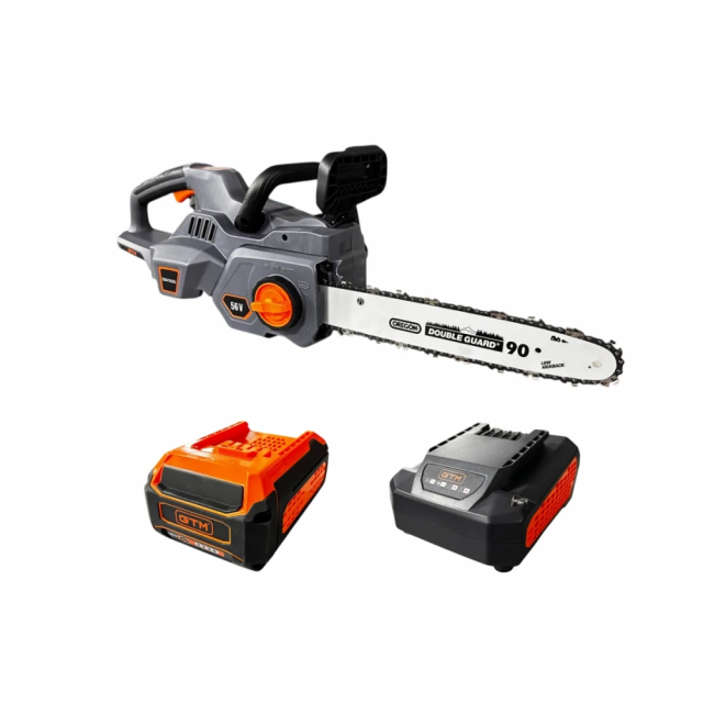 GTM CS56/1800BL - компактна та потужна акумуляторна ланцюгова пила професійного класу, яку розробили для обрізки дерев і кущів, а також садово-паркових робіт. Інструмент обладнаний безщітковим електричним двигуном, який живиться від стандартних акумуляторів GTM 56 В. Пила комплектується шиною довжиною 35 см і фірмовим ланцюгом Oregon.