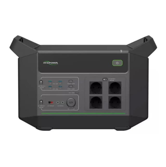 HYXiPower HYX-EA2500 2500W - портативна зарядна станція; що забезпечує надійну; безпечну та ефективну роботу завдяки акумулятору LiFePO4 з низьким внутрішнім опором та високою стійкістю до навантажень. Вона оснащена системою BMS з активним контролем стану батареї; підтримує сонячну зарядку низької напруги та дозволяє заряджатися лише за 150 хвилин. Станція має ємність 2496 Вт·ч; номінальну потужність 2500 Вт і пікову до 4500 Вт; що дозволяє підключати навіть енергоємні пристрої. Прилад оснащений безліччю роз'ємів; включаючи USB-A; USB-C; Anderson та автомобільний вихід; забезпечуючи універсальність застосування. Компактні розміри; висока ефективність інвертора та широкий робочий температурний діапазон від -10 до +45 ° C роблять електростанцію ідеальним рішенням для дому; роботи та подорожей.