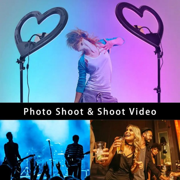 Кольцевая РГБ лампа в форме сердца LED RGB JM33 см - это оригинальное, универсальное и необычное осветительное устройство дополнительного освещения.