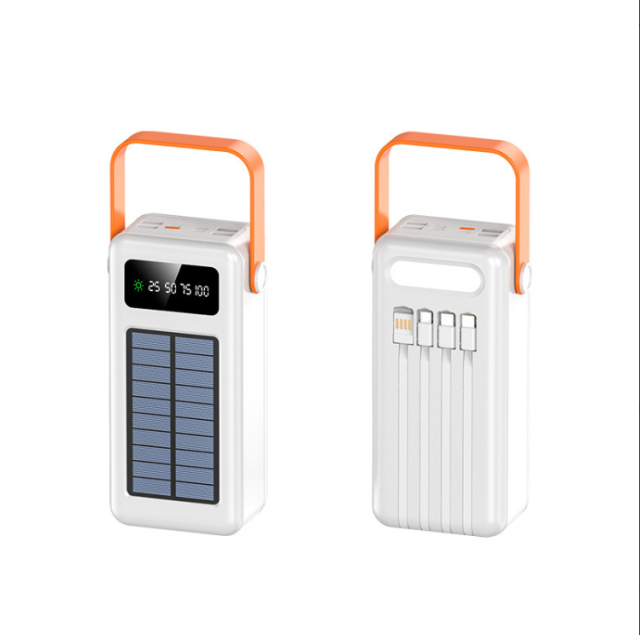 - Power Bank з сонячною панеллю та вбудованими дротами