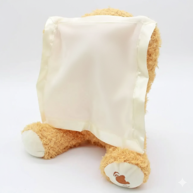 Мишка выполнен в виде очаровательного медвежонка с платочком в лапках. Мишка играет в прятки, изготовлена из высококачественного искусственного меха и имеет мягкий наполнитель, благодаря чему будет безопасна для ребенка. Эта интерактивная игрушка. Нажмите на лапку мишки и он поиграет с ребенком в игру, прячась за платочком.