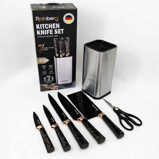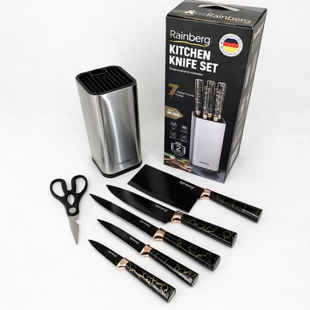 Набор кухонных ножей Rainberg RB-2325 — это полноценный комплект для домашней кухни, рассчитанный на ежедневное использование и закрывающий основные задачи при приготовлении пищи.