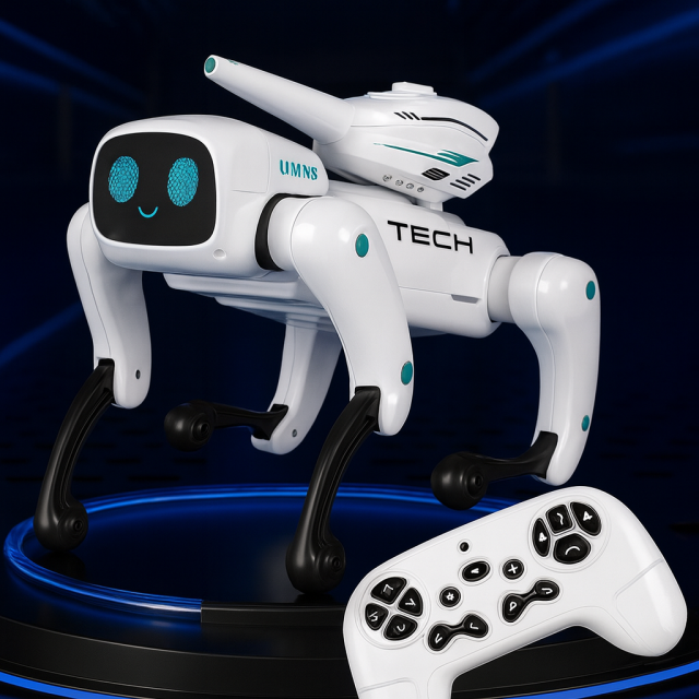 Робот‑собака Mech Guardian QF660‑2 — высокотехнологичная и интерактивная игрушка нового поколения, которая превращает игру в настоящее приключение. Этот робот сочетает характер настоящего четвероногого питомца, функции дистанционного управления и программирования, а также эффектное световое и звуковое сопровождение.