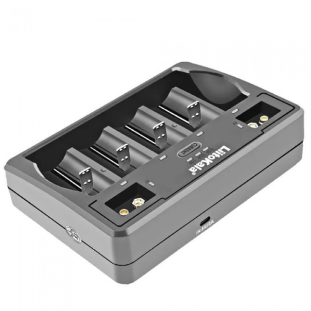 Универсальное зарядное устройство LiitoKala Lii-D4 – зарядное устройство на 4 канала для заряда целиндрических аккумуляторов и 2 канала для заряда крон 9В с удобным управлением одной кнопкой которой можно выбрать ток заряда, с возможностью одновременно размещать 4 аккумулятора формата D. Автоматически распознает литий-ионные, никель-металлгидридные и никель-кадмиевые аккумуляторы, имеет 4 + 2 слотов для заряда и может одновременно заряжать от 1 до 4 цилиндрических аккумуляторов разного химического состава и практически всех типоразмеров аккумуляторов АА, ААА, С (R14), D, A, SC, 14500, 16340, 18350, 18650, 21700, 20700, 26650, 32700 и другие. Также имеет два слота для заряда аккумуляторов в формате 6F22 крона.