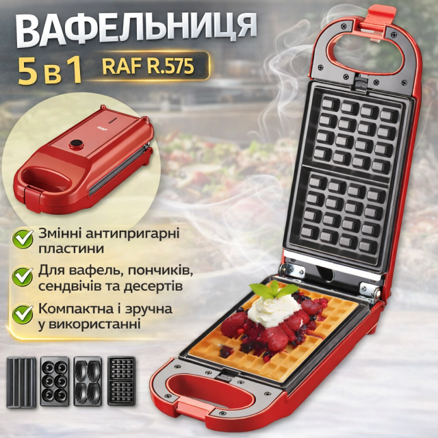 Электрическая вафельница с набором сменных пластин и антипригарным покрытием RAF R.575 700W, Одеса