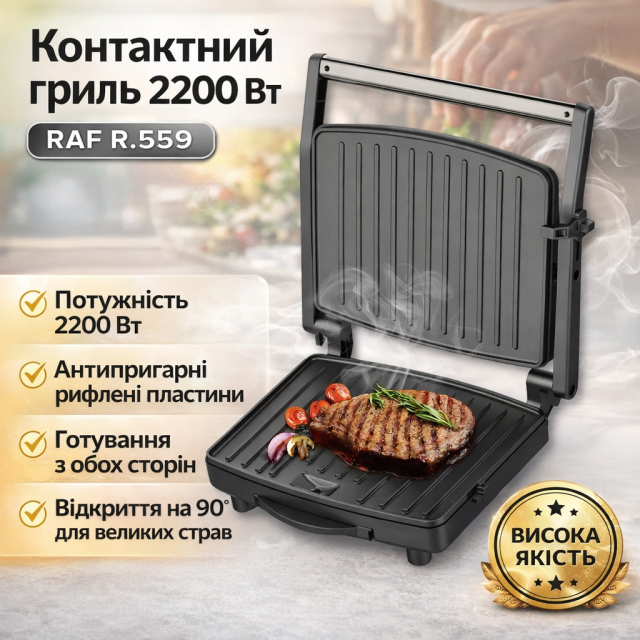 Электрический гриль с антипригарными и рифлеными пластинами RAF R.559 2200W, Одеса